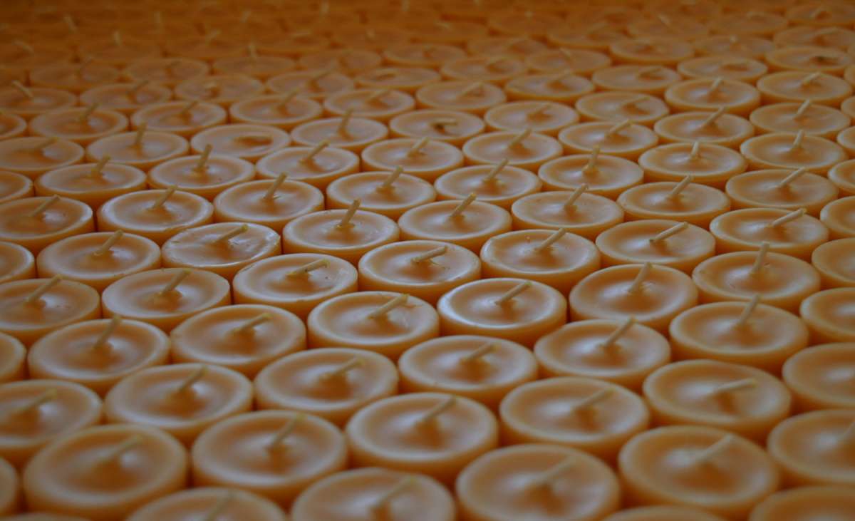 Unsere Teelichter sind aus 100% reinem Bienenwachs und wurden in der Werksiedlung St. Christoph in Müllheim von Menschen mit Behinderung hergestellt. Die Teelichter werden von Hand gegossen und gedochtet und ohne Aluhülle ausgeliefert damit kein unnötiger Müll entsteht.