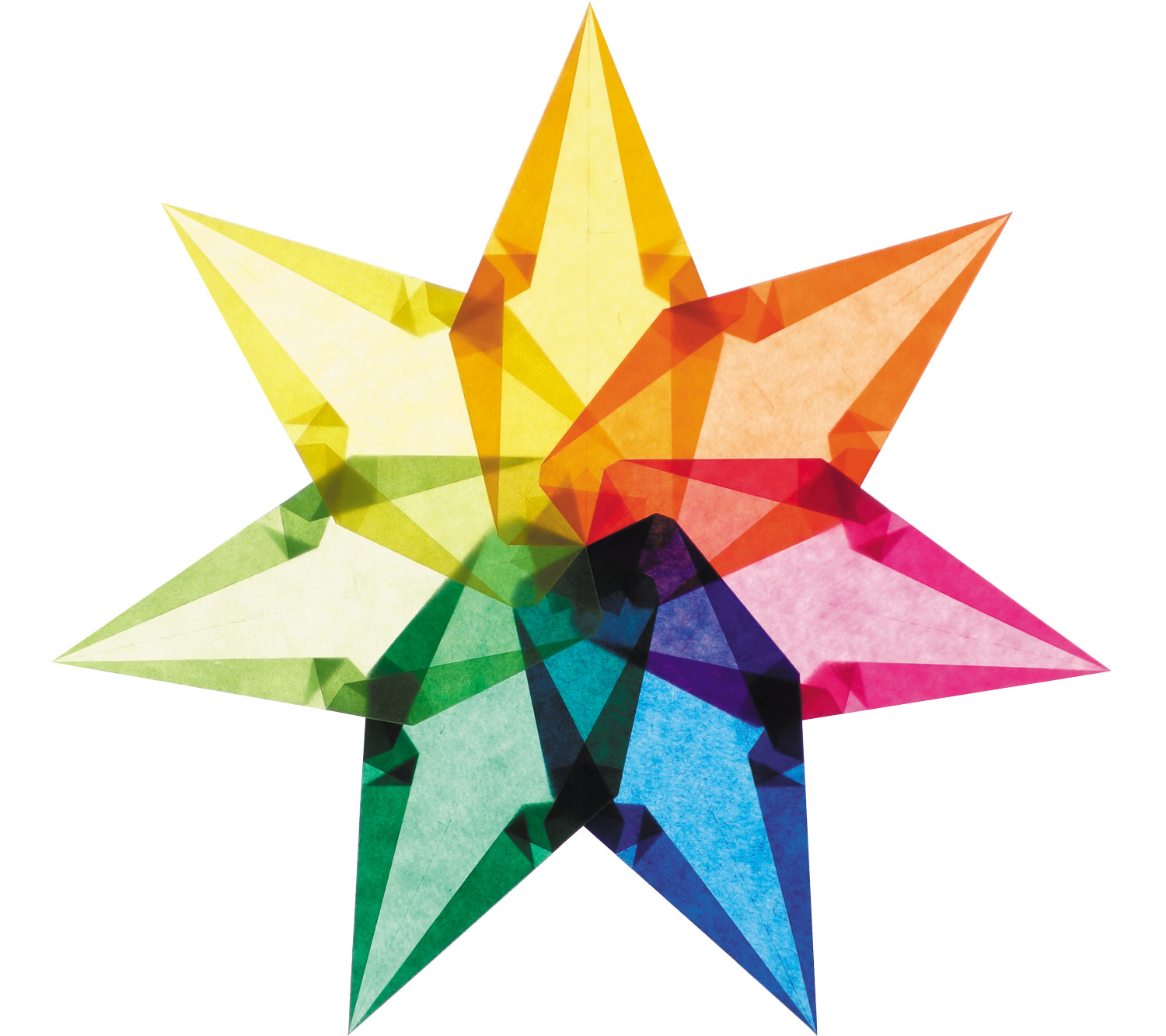 - Zwei Schablonen ermöglichen das exakte Zusammenfügen der Strahlen zu Sieben- oder Achtsternen.